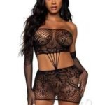 Strap Lace Tube Dress/gloves 2pc Os Blk